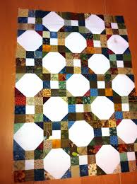 Tamén se pode optar polo método clásico de separar os bloques con simples tiras de cor neutra e cadriños nas esquinas (cornerstones): créase un debuxo secundario en forma de cruces.